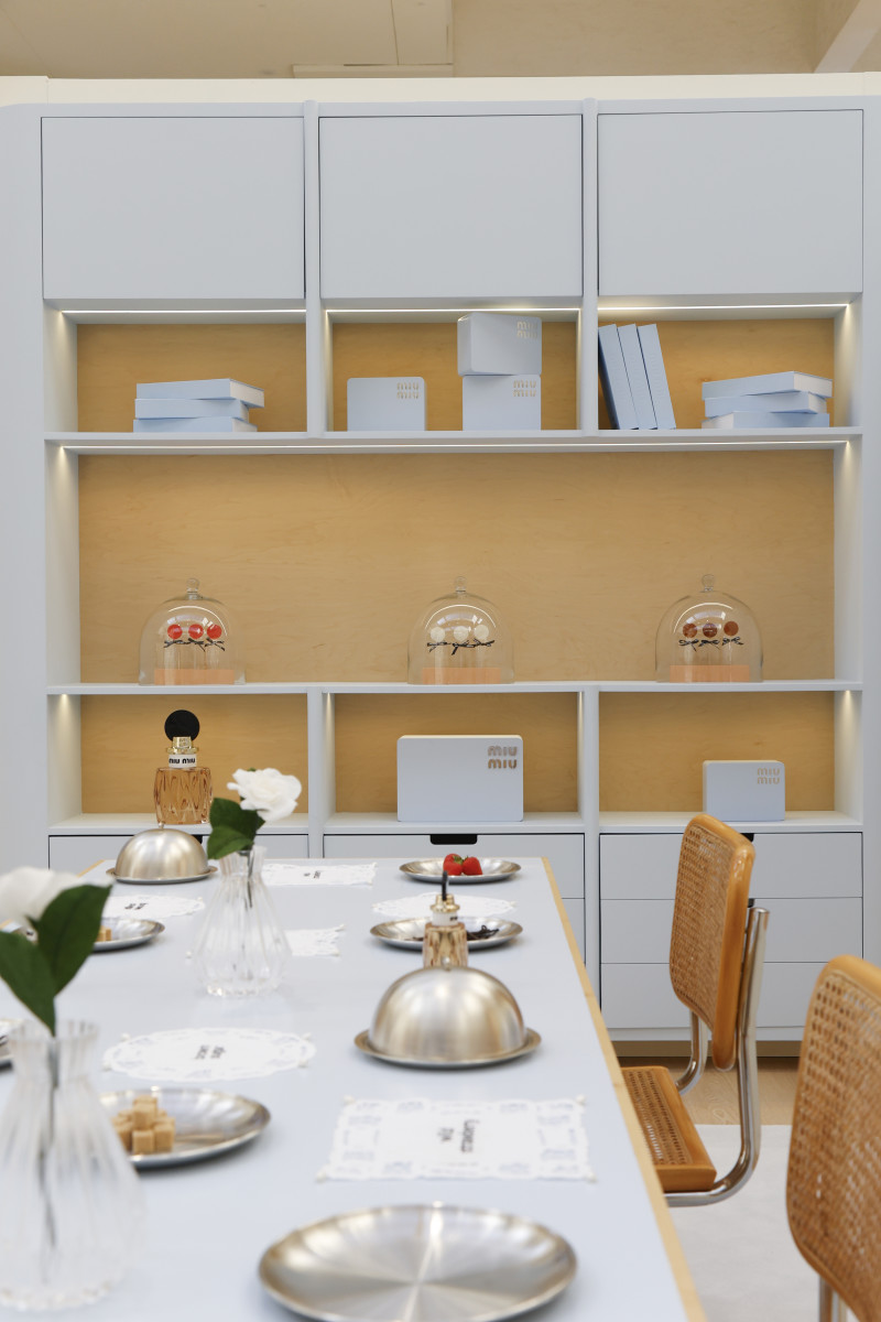Miu Miu Beauty’s first and pop up and homage to the brand’s newest scent, Miutine, designed and styled as a holiday apartment.
