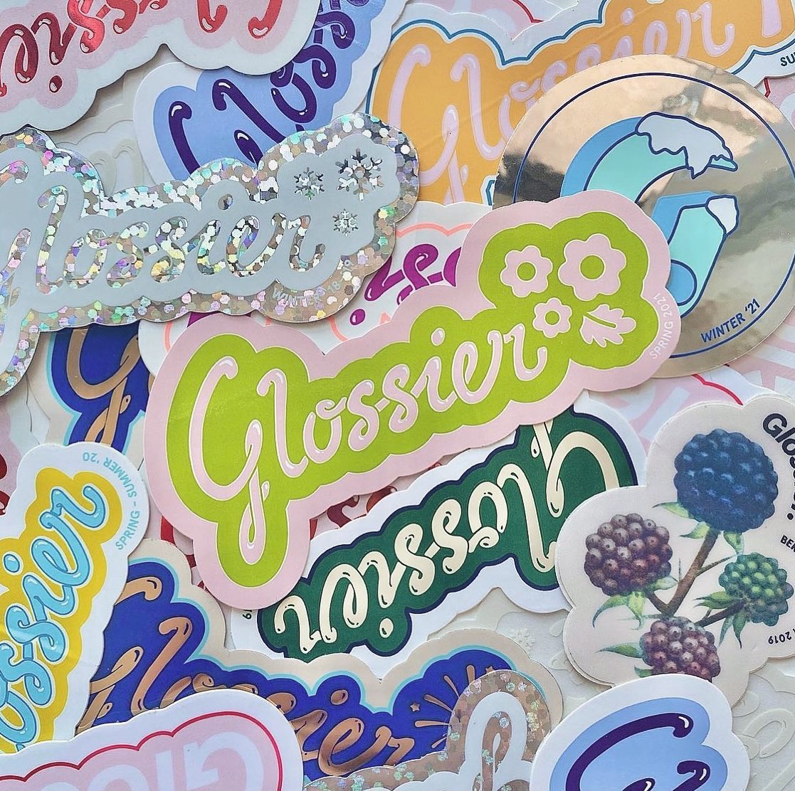 Glossier seasonal stickers, including Spring ‘21 and Winter ‘21